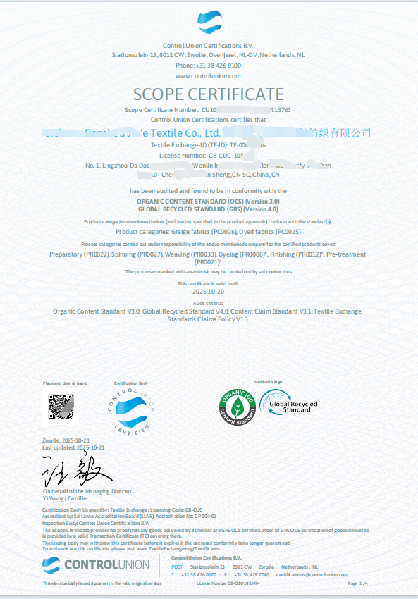 致佳咨询近期辅导某大型纺织企业通过GRS&OCS可持续监管链标准认证。在全球环保浪潮下,消费者对可持续产品的偏好已成主流。产品将享受包括专属流量扶持、提升品牌形象和拓展国际市场在内的诸多优势,据统计消费者愿意为环保标签产品付出高达15%的溢价。