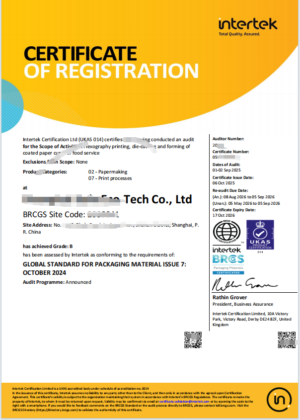 致佳咨询近期辅导某知名食品包装客户通过新版BRC 包材第七版标准的认证审核,顺利获得认证证书。新标准强调在每个认证工厂发展产品安全文化的重要性。包括加强对危害分析和风险评估(HARA)的要求,旨在与食品法典指南要求保持一致。增强产品安全性、提高审核的灵活性,并扩大认证范围。